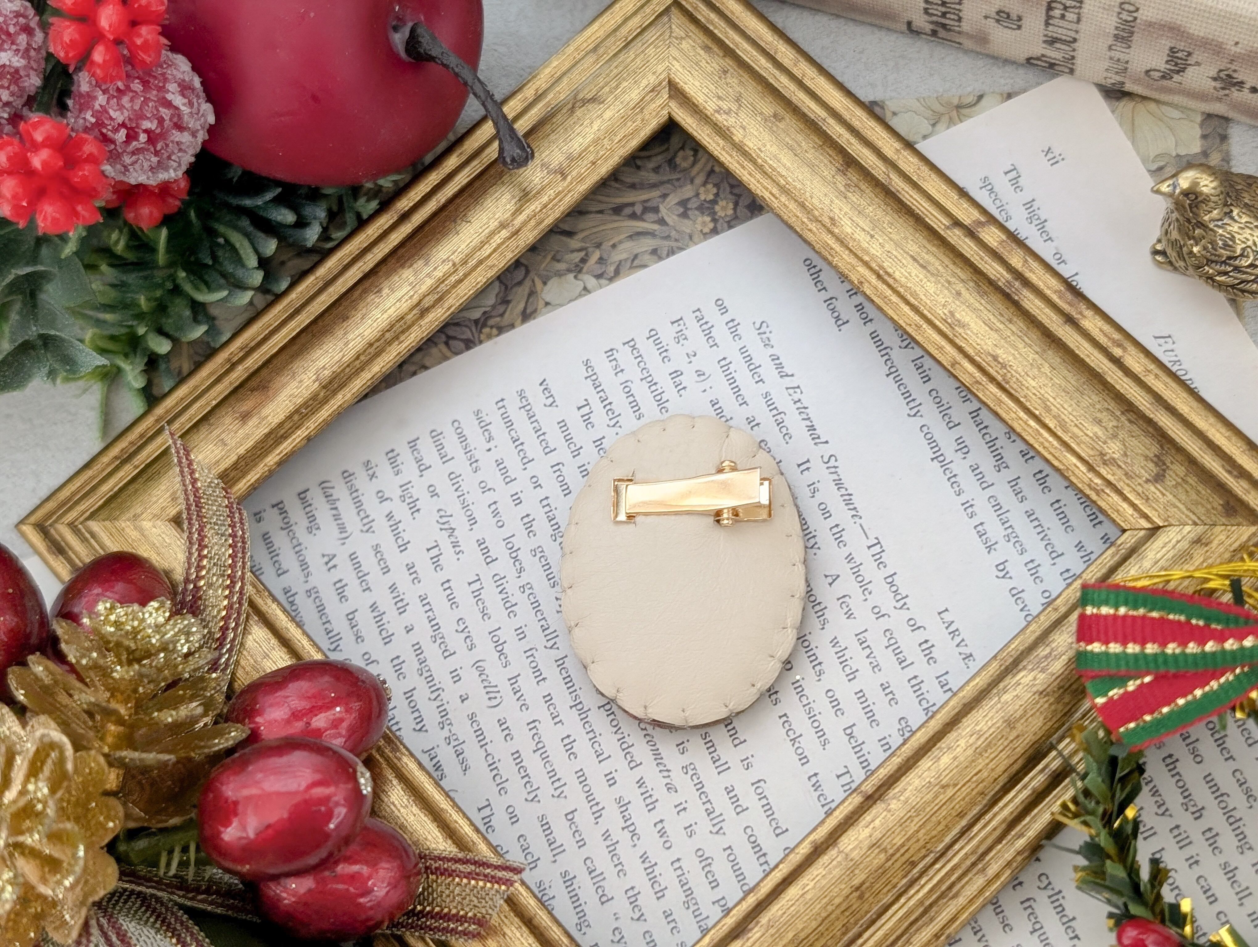 ベレー帽に付けたり、マフラーやストールの抑えとしてお使いいただくのもおすすめです。