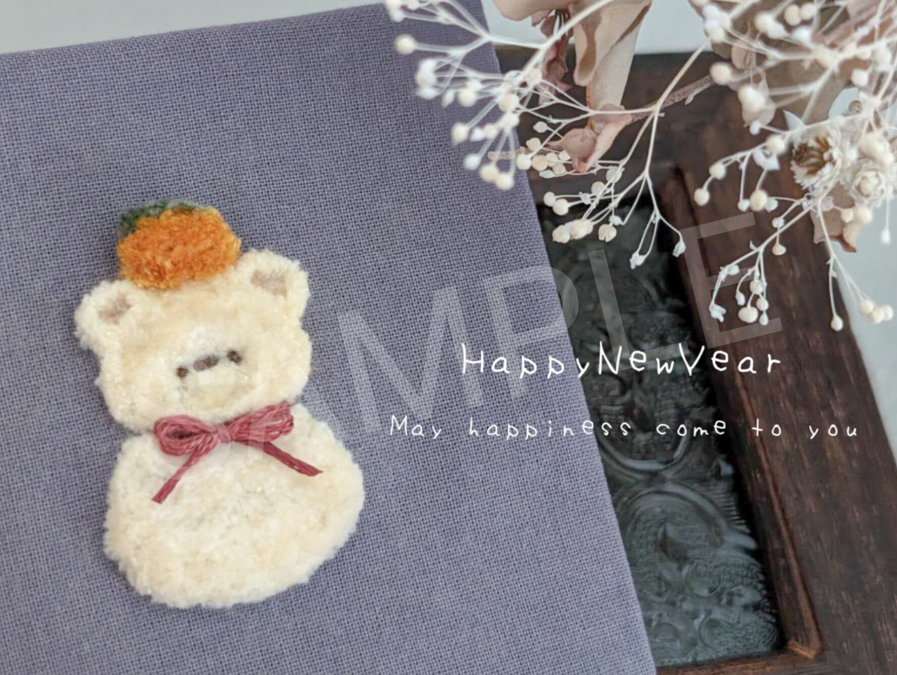 もう一つは、ふわもこのくま鏡餅の年賀状デザイン。見るだけで心がほっこりとするような、暖かい気持ちにさせてくれるポストカードです。寒い冬の季節を彩るメッセージカードとして、大切な人への贈り物や新年のご挨拶にぜひお使いください